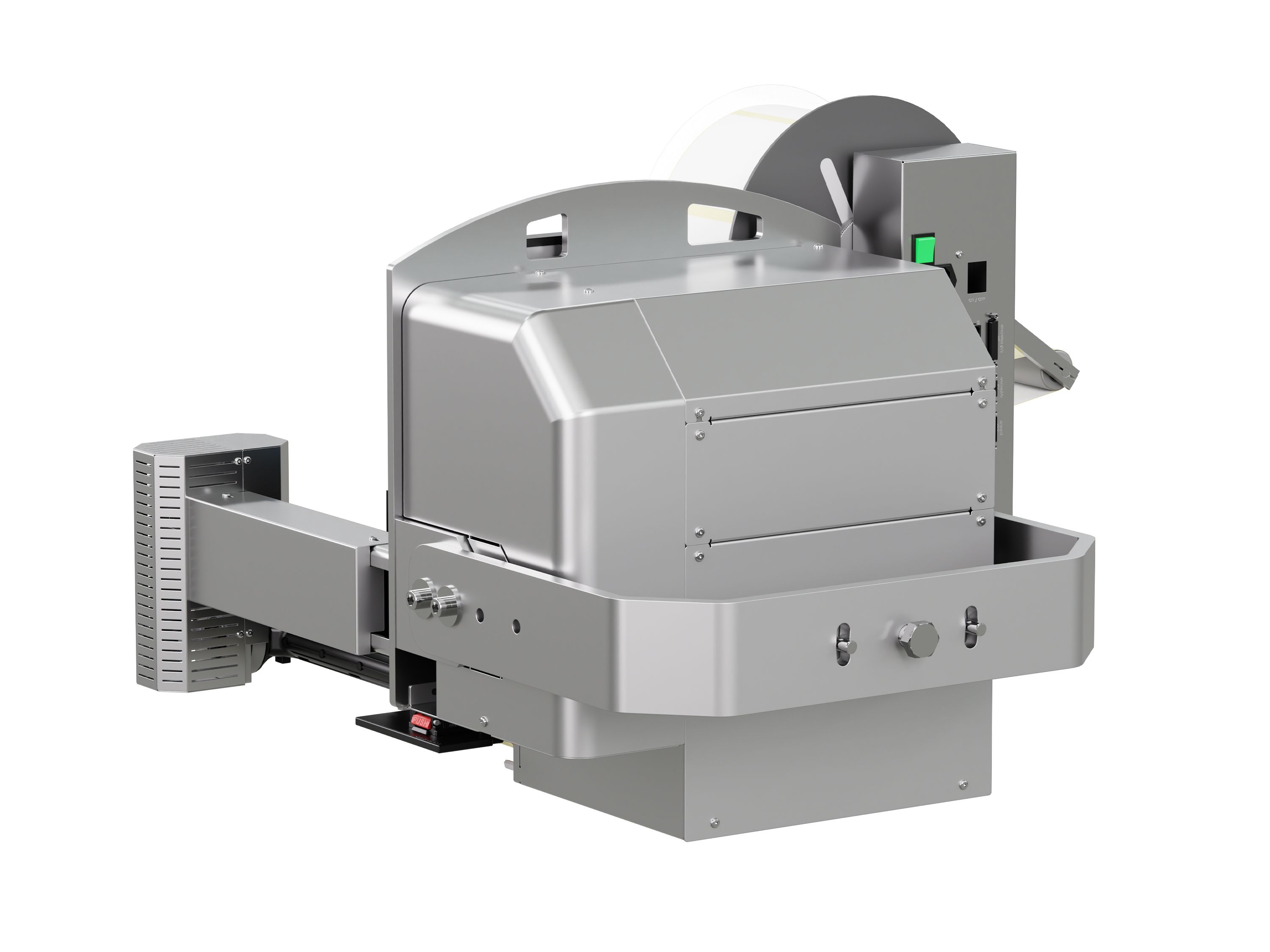 Das Herzstück des Legi-Air 4050RR ist ein rotatorischer Schwenkarm mit zwei Achsen, der eine Etikettierung an Front, Seite oder Rückseite des Kartons ermöglicht. Applikator und Etikettierstempel rotieren unabhängig voneinander, wodurch der Stempel stets parallel zur Produktoberfläche bleibt. So wird eine exakte Platzierung der Etiketten selbst bei komplexen Produktlagen oder variierenden Kartonausrichtungen gewährleistet. Das Ergebnis: höchste Präzision und Flexibilität in unterschiedlichsten Logistik- und Produktionsumgebungen.