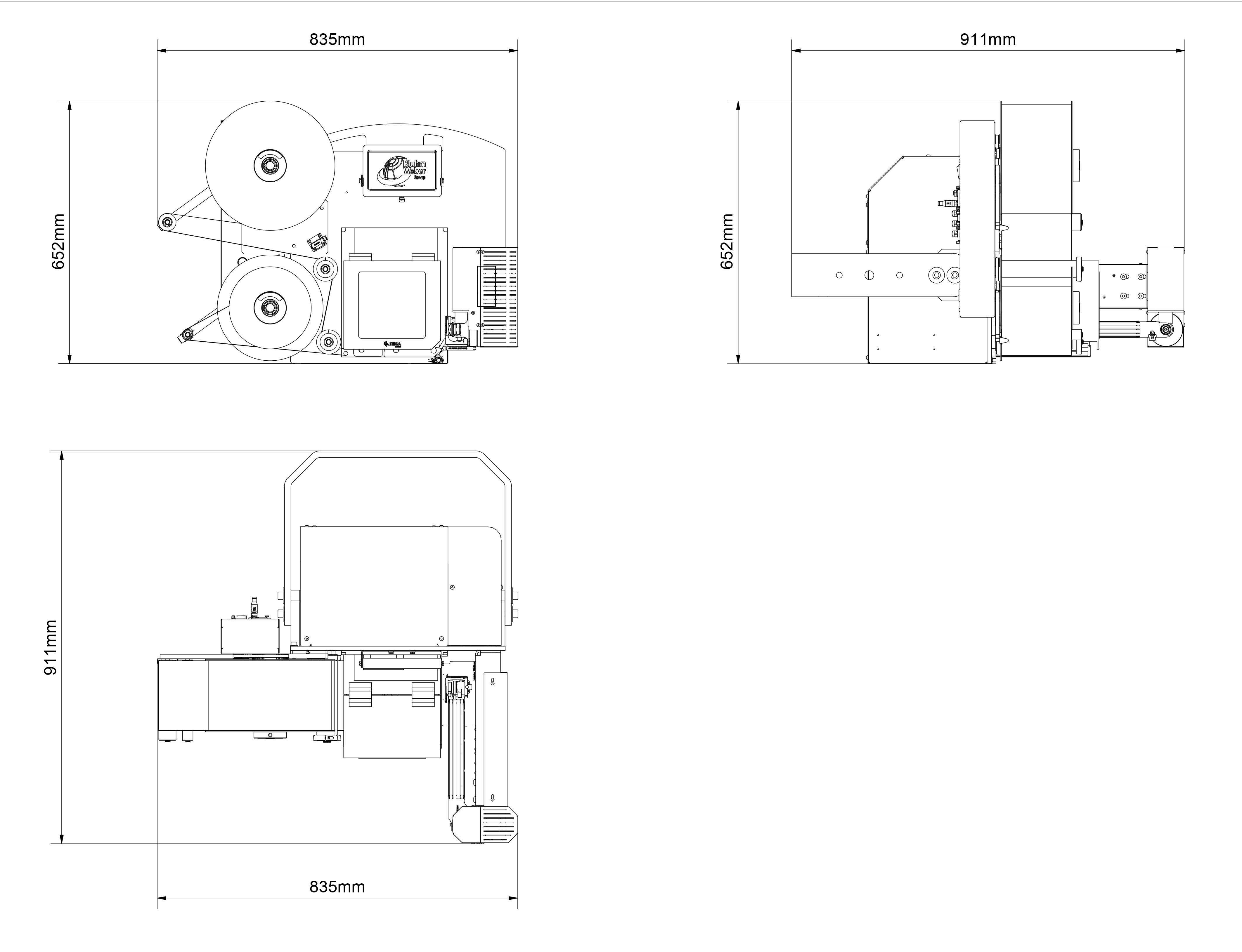 652 mm x 590 mm x 835 mm